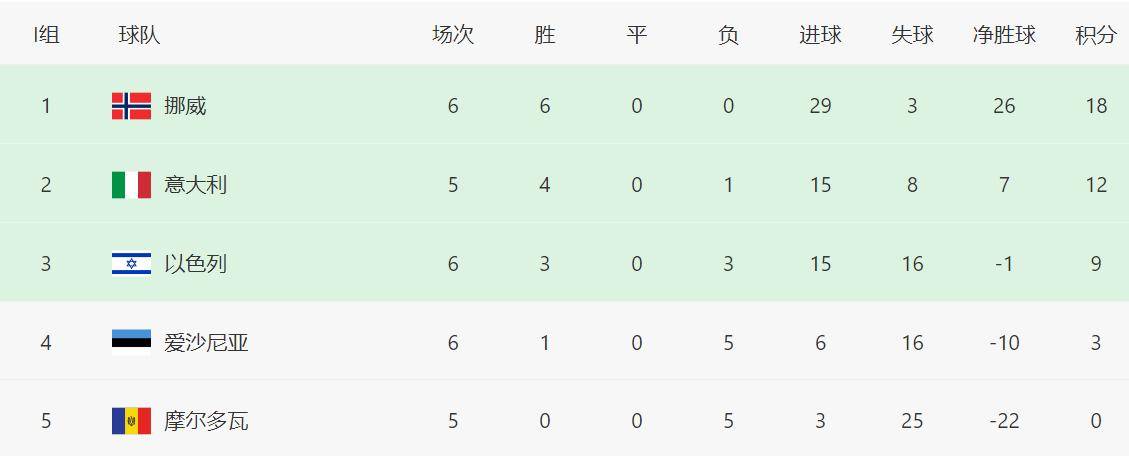 赛后数据方面,哈兰德对挪威国家队的出场记录为46次,打进51球,其中最近15场打入24球,效率极高。此外,他还连续10场在国家队和俱乐部的比赛中都有进球,总共18球。当前小组积分榜显示,挪威6场全胜积18分,遥遥领先;意大利5战积12分,紧随其后保持第二名。以挪威目前的势头,直接晋级世界杯的概率很大。