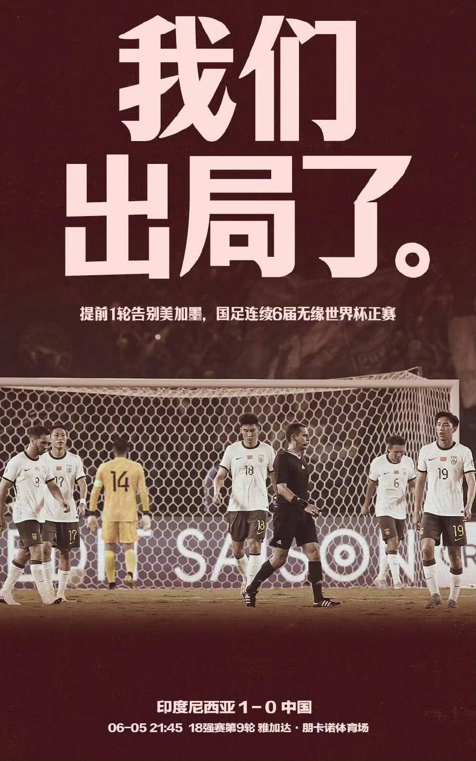 另一边,中国男足的晋级之路早在18强赛阶段0-1不敌印度尼西亚便已终结。