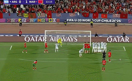 助跑、摆腿、射门!皮球划出一道美妙的弧线,直挂球门左上角。阿根廷门将全力扑救却只能目送皮球入网。这个进球点燃了全场摩洛哥球迷的热情,也奠定了比赛的基调。