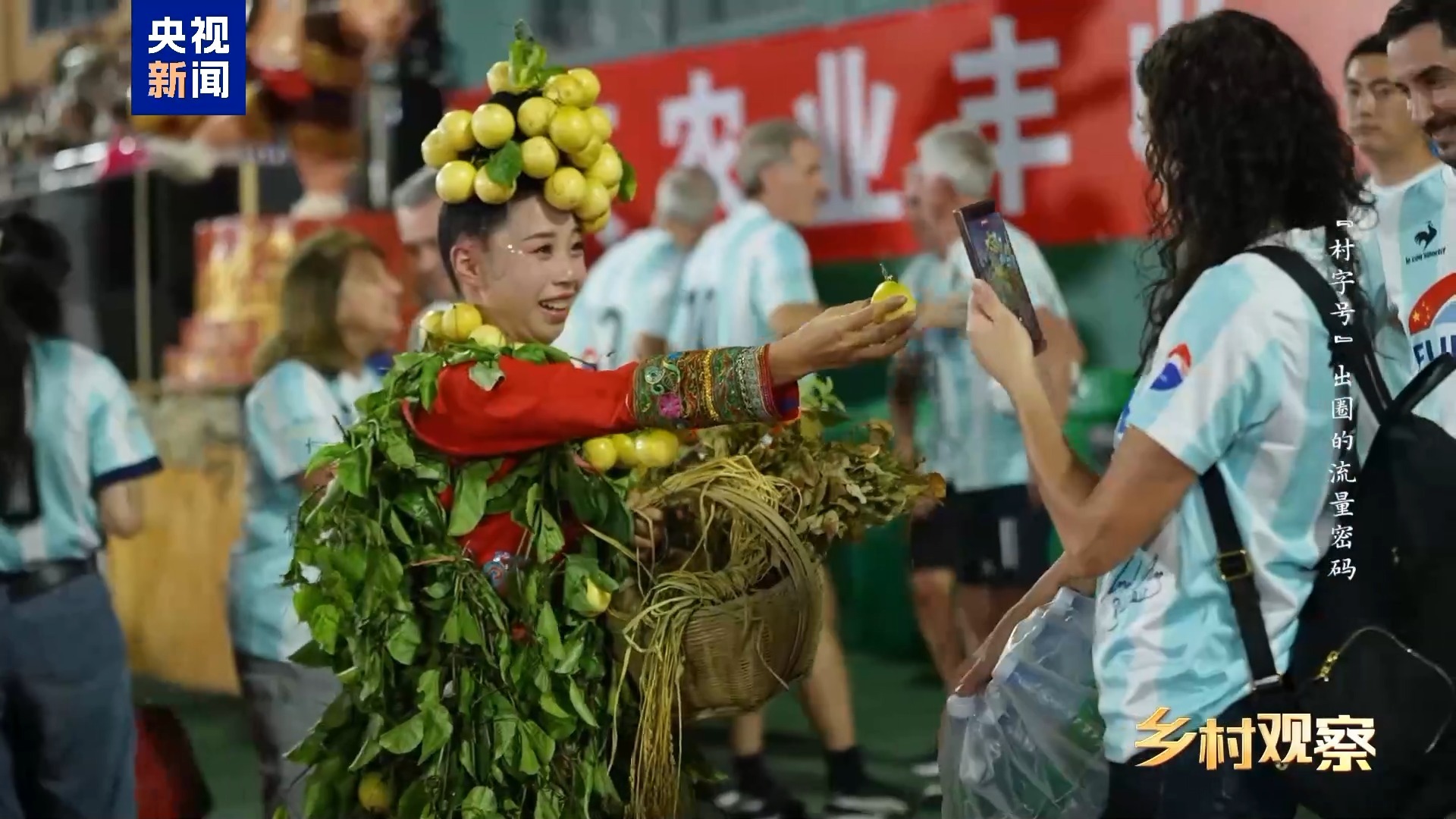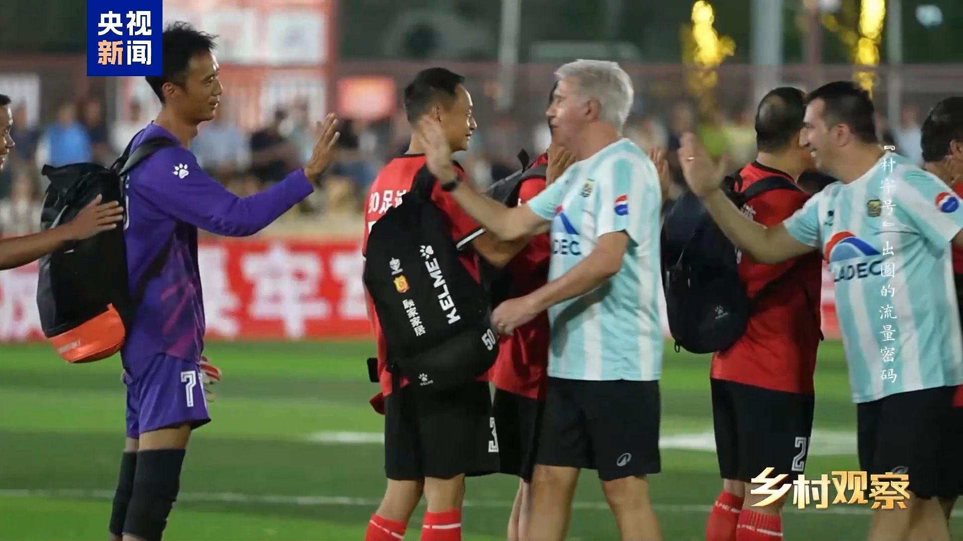 今年国庆节期间,“阿根廷1986年世界杯冠军队”球员鲁杰里、朱斯蒂、布鲁查加,来到贵州“村超”赛场,与当地村民组成的足球队同台竞技。